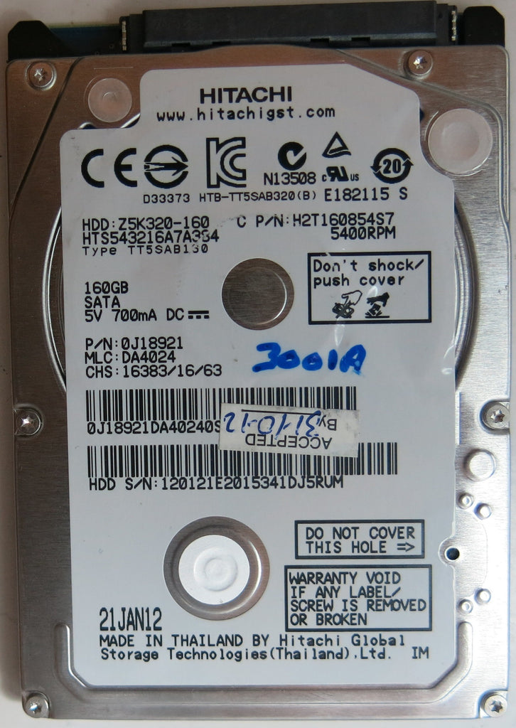 HITACHI HTS543216A7A384 PN 0J18921 MLC DA4024 160GB