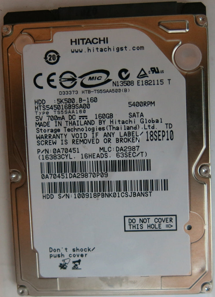 HITACHI HTS545016B9SA00 PN 0A70451 MLC DA2987 160GB