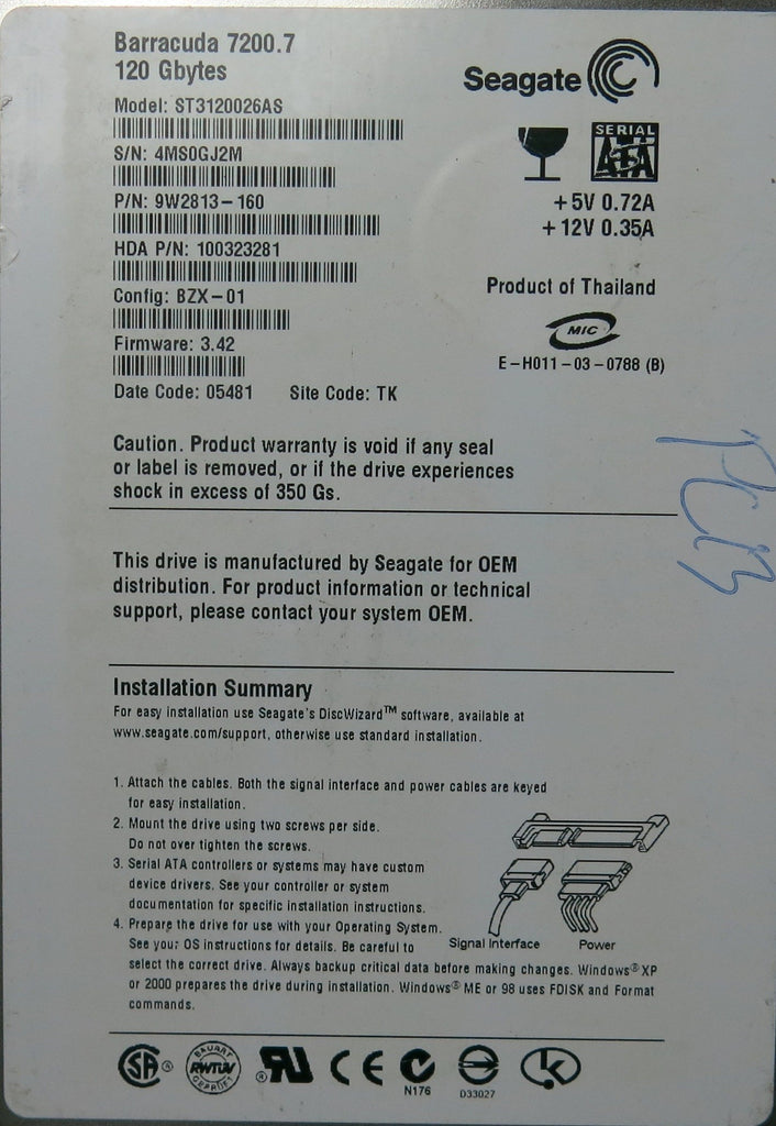 ST3120026AS PN 9W2813-160 100333621 REV A PCB