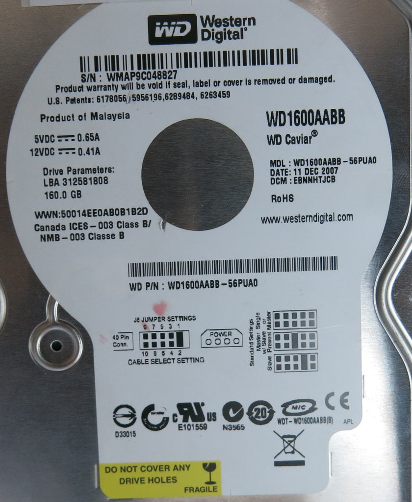 WD1600AABB-56PUA0, DCM EBNNTJCB, 2060-701494-002 REV B