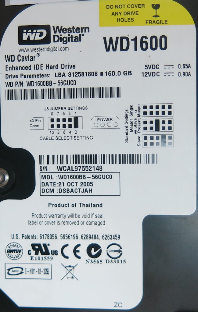 WD1600BB-56GUC0, DCM DABACTJAH, 2060-701266-001 REV A