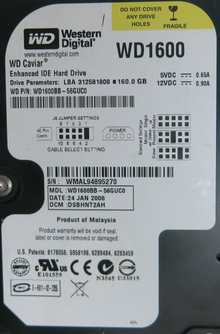 WD1600BB-56GUC0, DCM HSBANT2CA, 2060-701266-001 REV A