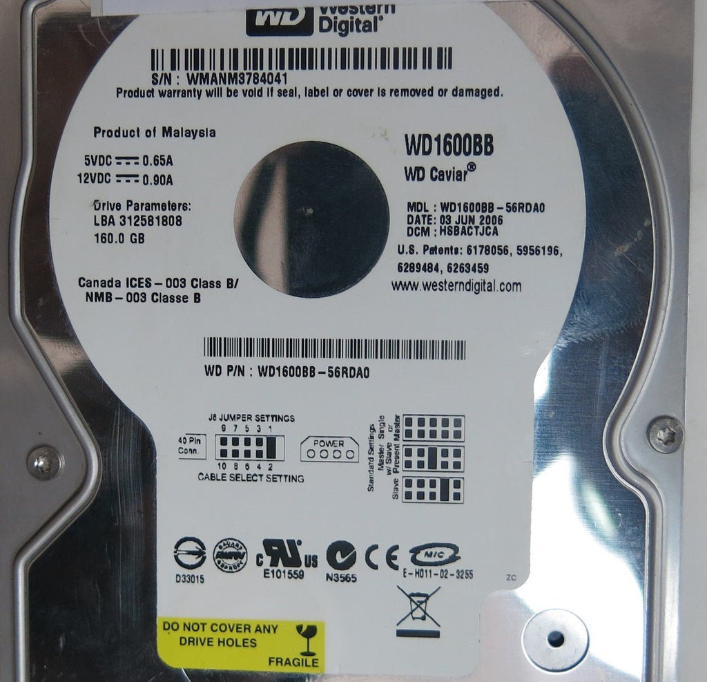 WD1600BB-56RDA0, DCM HSBACTRJCA, 2060-701292-001 REV A