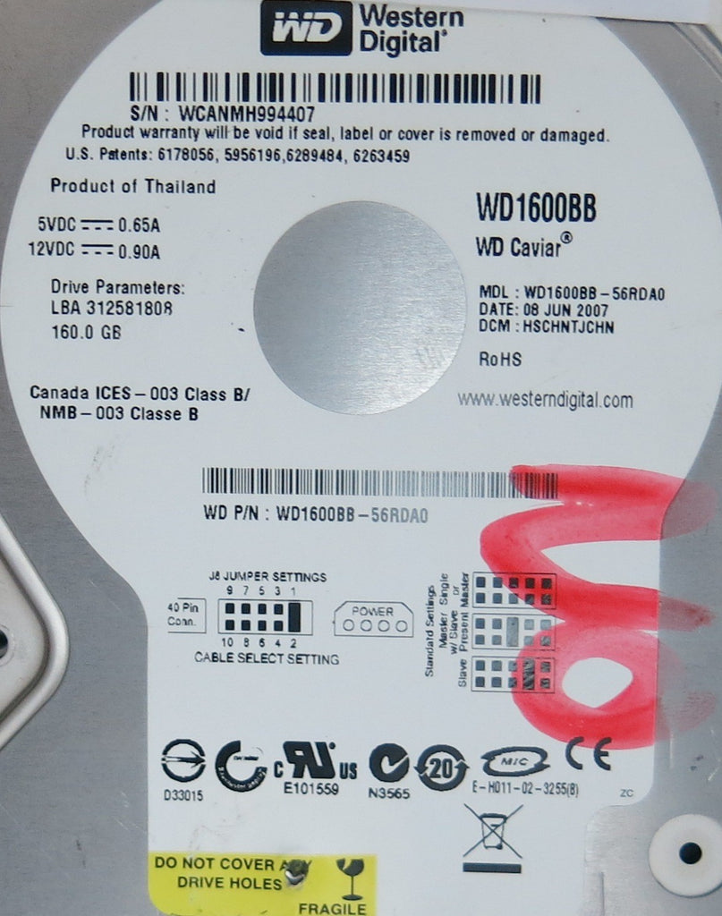 WD1600BB-56RDA0, DCM HSCHNTJCHN, 2060-701292-002 REV A