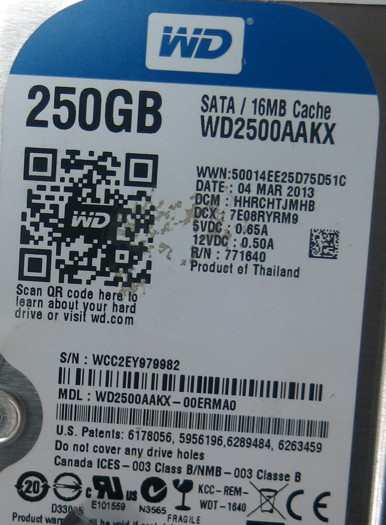 WD2500AAKX-00ERMA0, DCM HHRCHTJMHB, 2060-771640-003 REV A