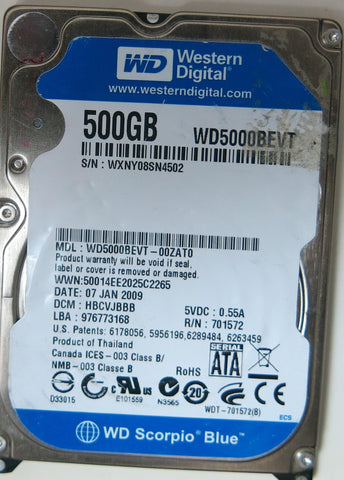 WD5000BEVT-00ZAT0, DCM HBCVJBBB, 2060-771692-005 REV A