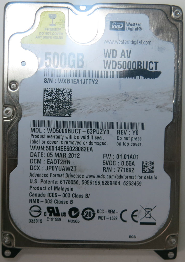 WD5000BUCT-63PUZY0, DCM EAOT2HN, 2060-771692-005 REV A