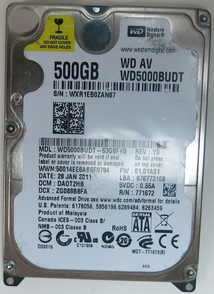 WD5000BUDT-63G8FY0, DCM DA0T2HB, 2060-771672-004 REV A