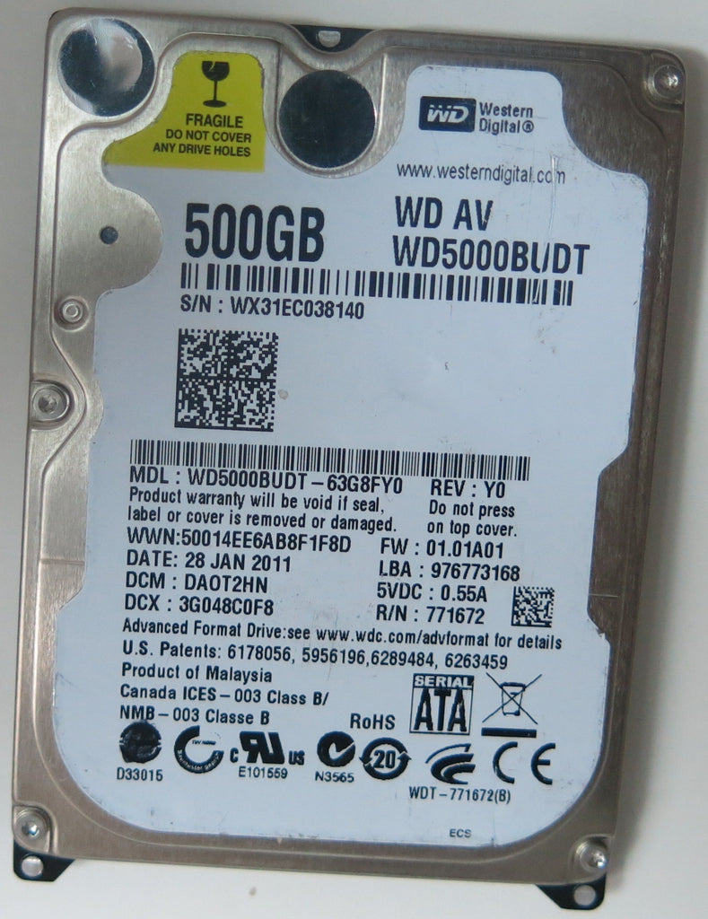 WD5000BUDT-63G8FY0, DCM DA0T2HN, 2060-771672-004 REV A