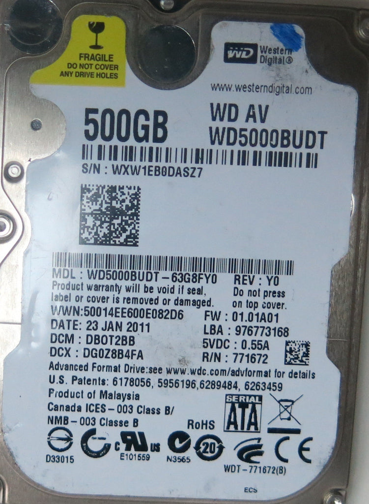 WD5000BUDT-63G8FY0, DCM DBOT2BB, 2060-771672-004 REV A PCB
