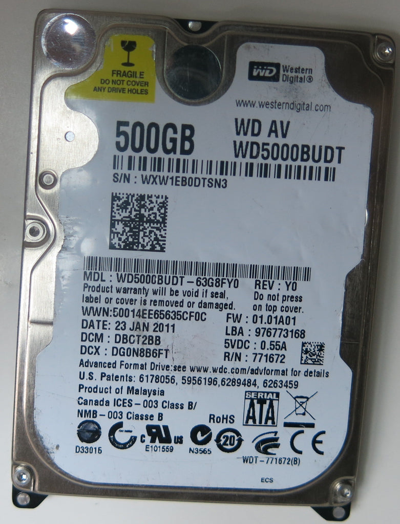 WD5000BUDT-63G8FY0, DCM DBOT2BB, 2060-771672-004 REV A