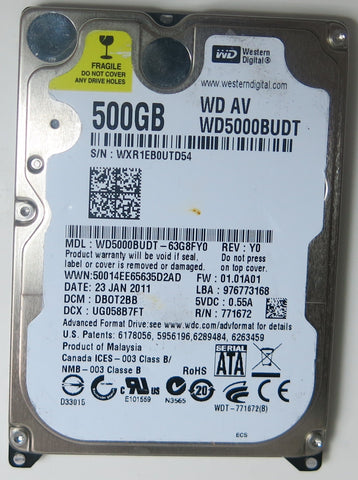 WD5000BUDT-63G8FY0, DCM DBOT2BB, 2060-771672-004 REV A