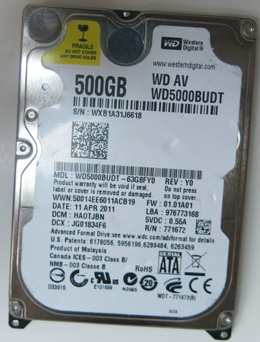 WD5000BUDT-63G8FY0, DCM HA0TJBN, 2060-771672-004 REV A