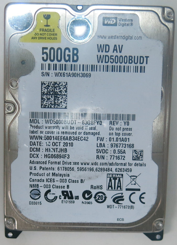WD5000BUDT-63G8FY0, DCM HHNTJHB, 2060-771672-004 REV A