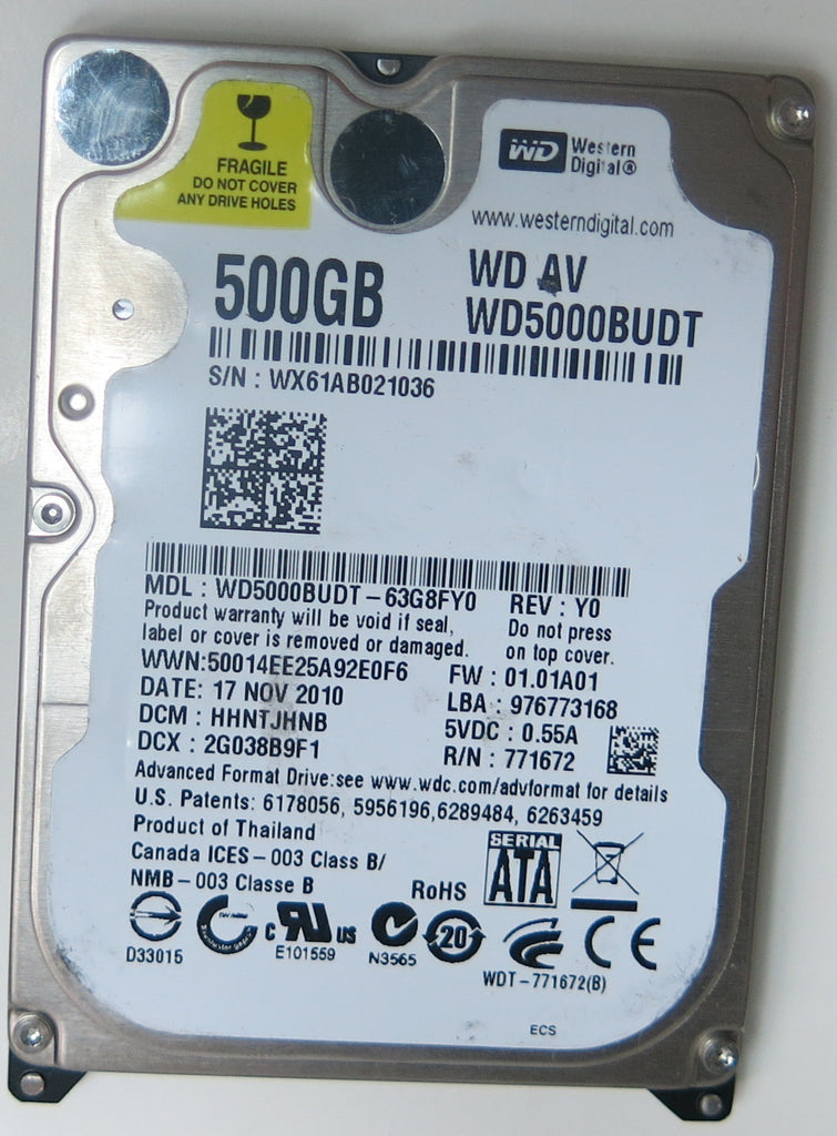 WD5000BUDT-63G8FY0, DCM HHNTJHNB, 2060-771672-004 REV A