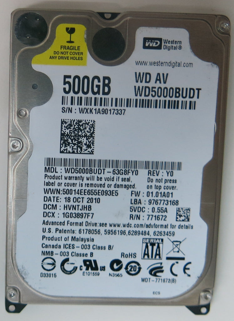 WD5000BUDT-63G8FY0, DCM HVNTJHB, 2060-771672-004 REV A