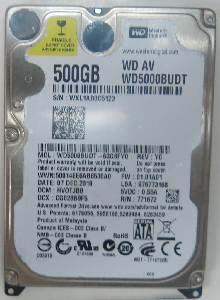 WD5000BUDT-63G8FY0, DCM HVOTJBB, 2060-771672-004 REV A