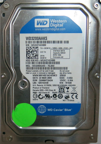 WESTERN DIGITAL WD3200AAKS'75L9A0, DCM 2060-701590-000REV A, PCB